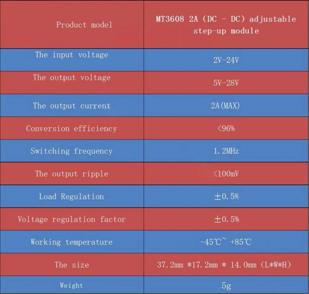 CentIoT® - DC-DC MT3608 Adjustable Boost Module 2A Boost Plate Step Up Module - boost 2V-24V to 5V 9V 12V 28V 5V-28V