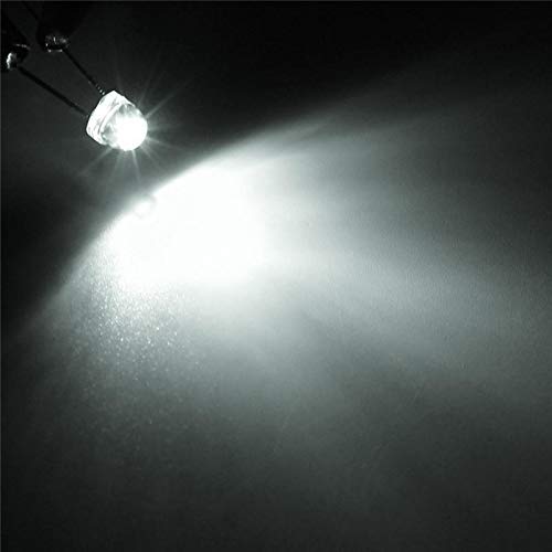 Details: 100 pcs 5mm Straw Hat LED Wide Angle Light lamp 5mm Lens Colour : Water Clear; Peak Luminous Intensity Typ Iv (mcd) : 5000 Life Rating : 100,000 Hours Viewing Angle : 120 - 140 Degree Absolute Maximum Ratings (Ta=25°C) Reverse Voltage : 5~6V Lead Soldering Temperature : 240°C ( less than5Sec) Operating Temperature Range : -25°C - +85°C Preservative Temperature Range : -30°C - +100°C