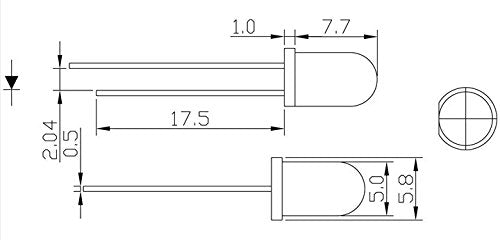 Details: Description 100 pcs 5mm Round LED Wide Angle Light lamp 5mm Lens Colour : Water Clear; Peak Luminous Intensity Typ Iv (mcd) : 5000 Life Rating : 100,000 Hours Viewing Angle : 120 - 140 Degree Absolute Maximum Ratings (Ta=25°C) Reverse Voltage : 5~6V Lead Soldering Temperature : 240°C ( less than5Sec) Operating Temperature Range : -25°C - +85°C Preservative Temperature Range : -30°C - +100°C