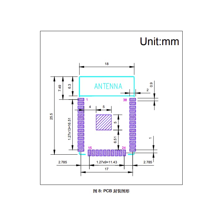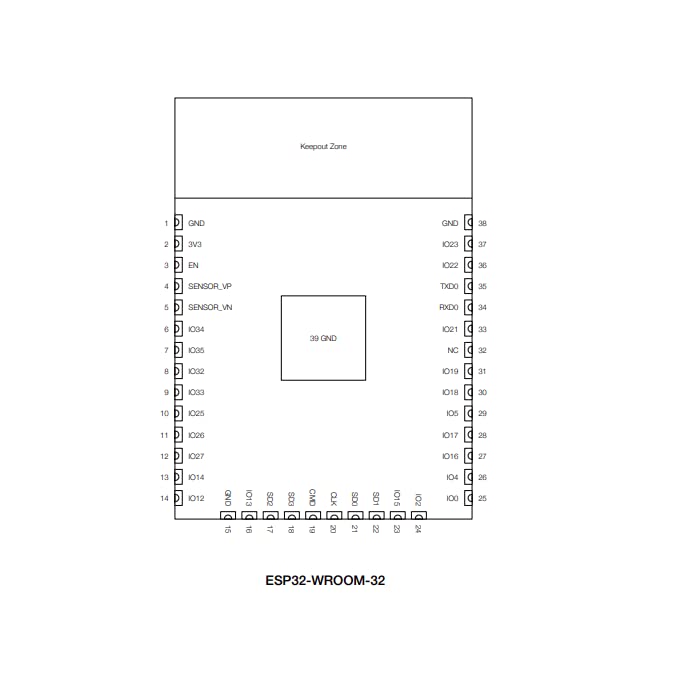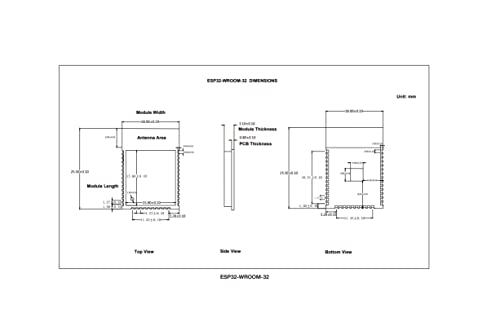 - IC: ESP32-D0WD; Onboard antenna; Analog power supply (2.3 V ∼ 3.6 V)