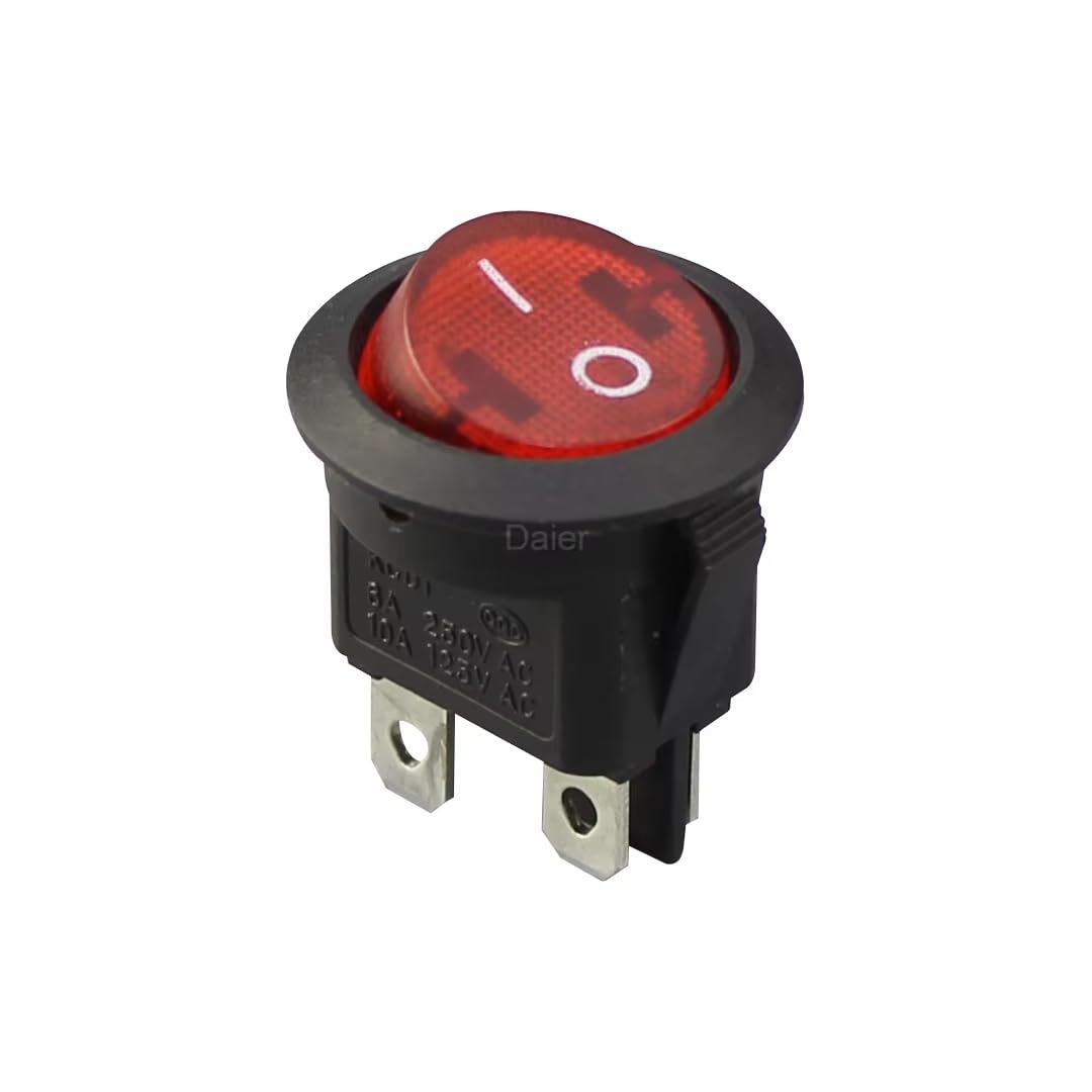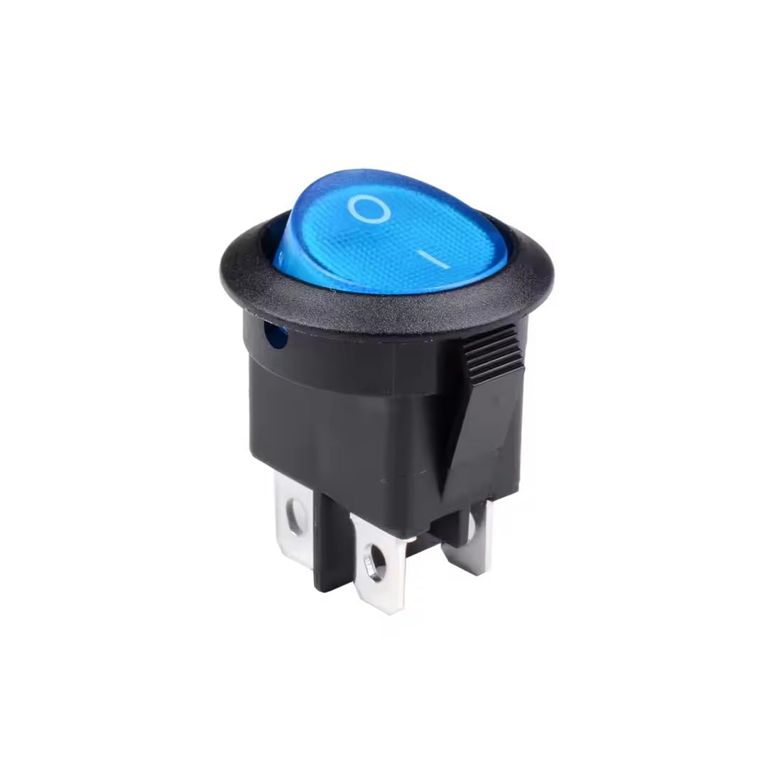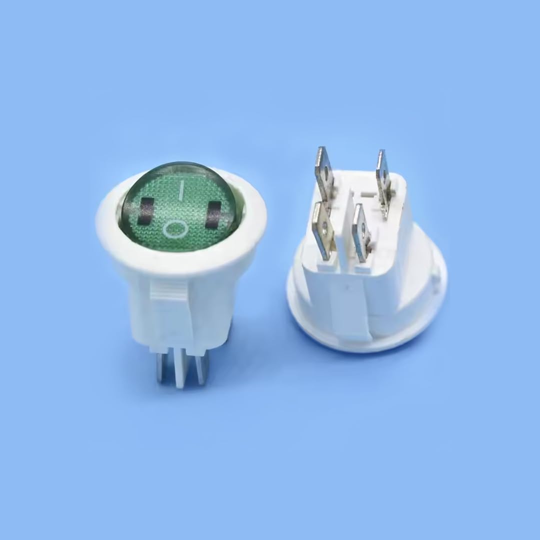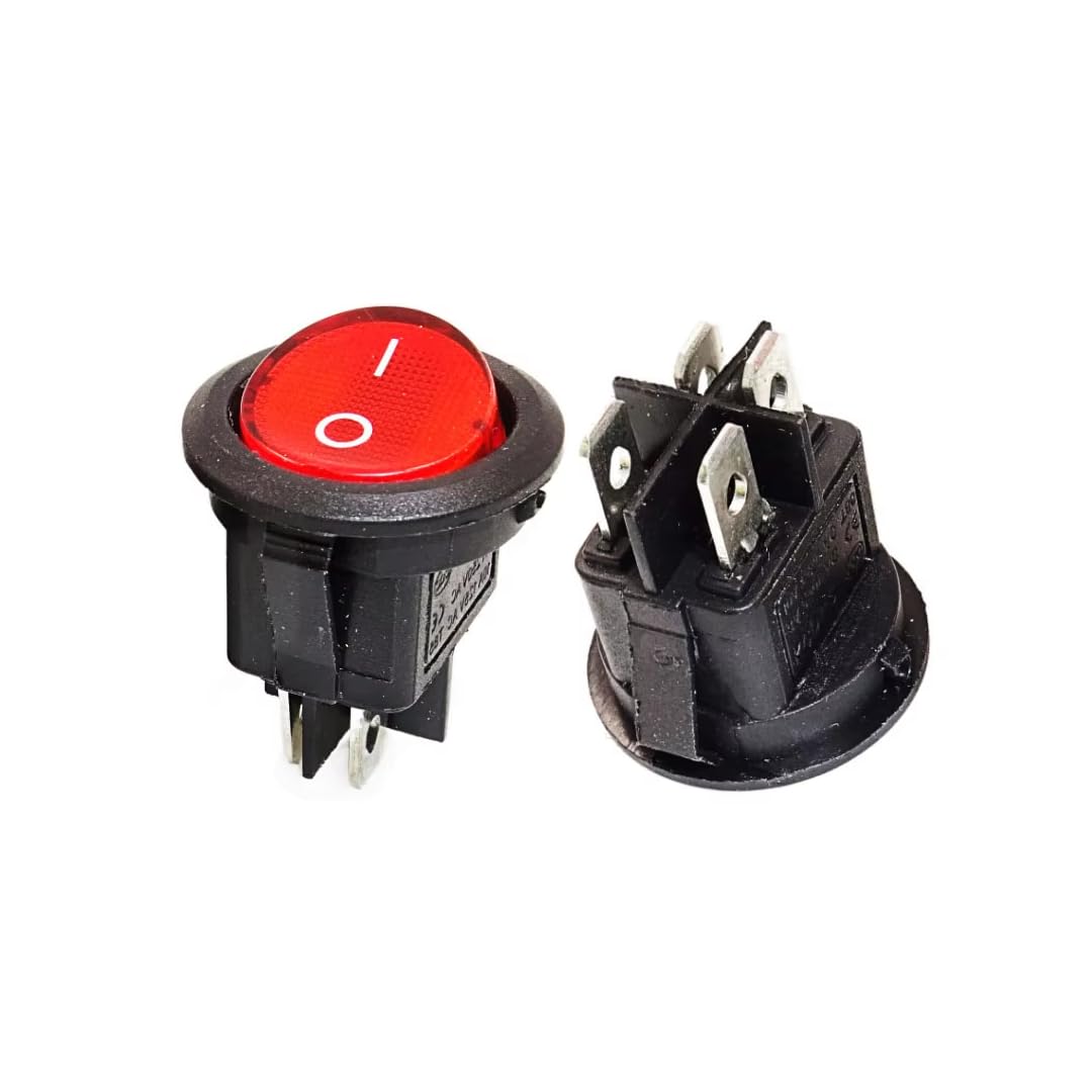 - CentIoT - Illuminated DPST ON/OFF KCD1 Round Rocker Switch 4.8mm terminals - 220VAC 6A, 4PIN