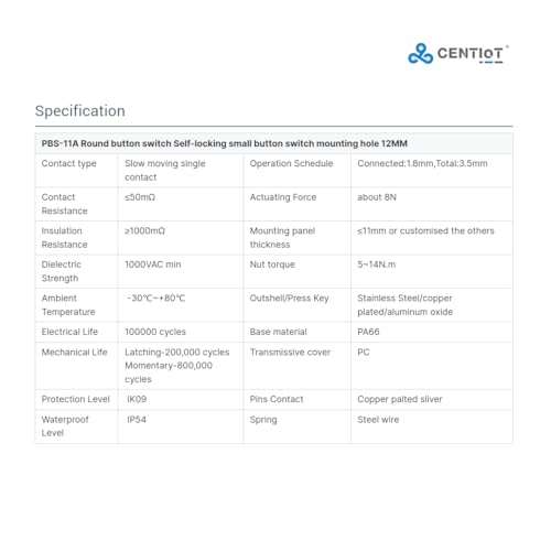CentIoT - PBS-11B Circular Push Button Switch on-off - 12MM self-locking Latching