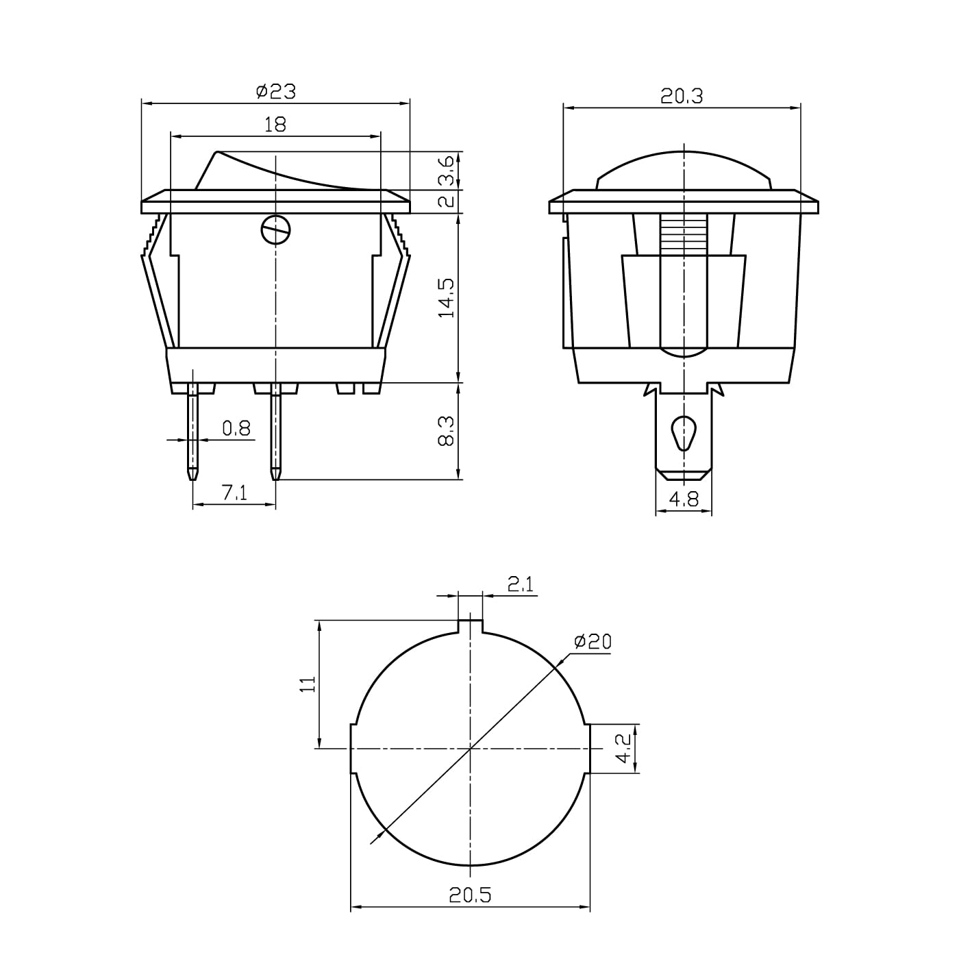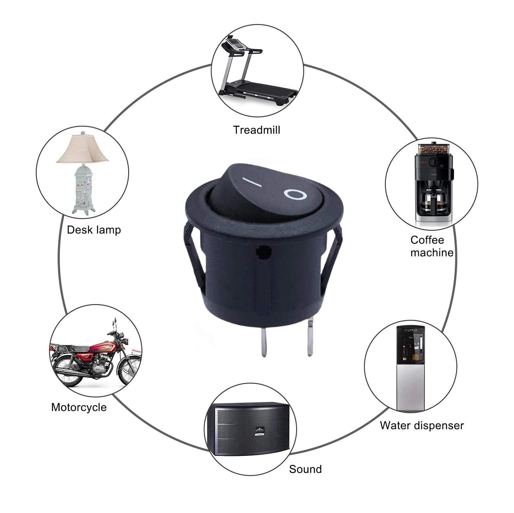 - CentIoT - Round Rocker Switch - KCD1 Round bottom snap fit 250V 6A (SPST ON-OFF 2 Position, 250V 6A 2PIN, Black Button, Pack of 5)